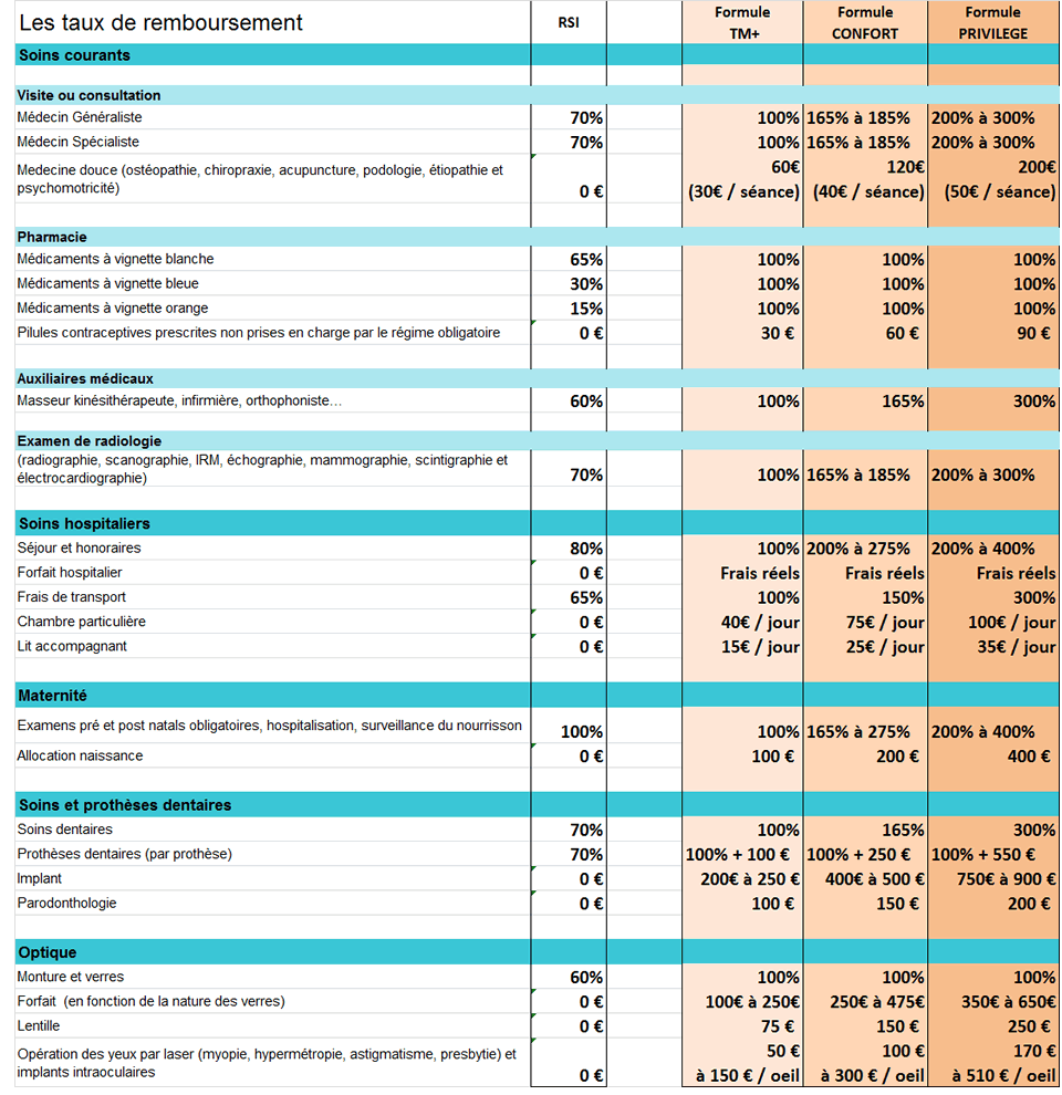 Les remboursements du Rsi et les formules de mutuelles santé proposées